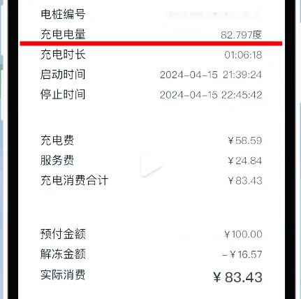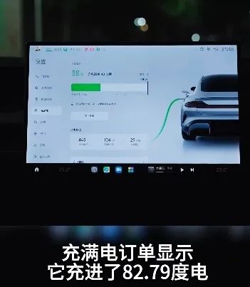 他把一辆最低配版本的小米 SU7 跑到没电,然后从 0 开始充满,最后竟然花了 82.79 度电,而他这台 SU7 的实际电池电量只有 73.6 度,大概多用了 12.5% 。