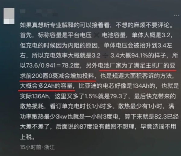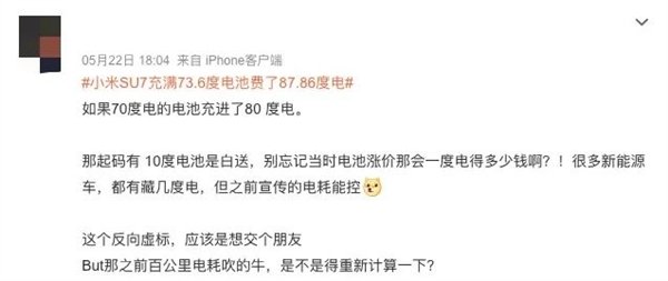 所以,小米 SU7 的这个问题,大概率就是电池充电损耗的原因,那 10% 以上的损耗正常吗?这你还真别说,损耗 10% 不仅有,而且还很多。