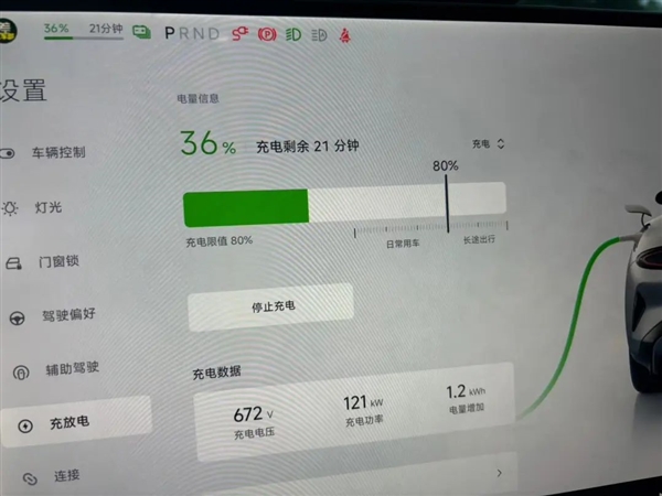 先说明,这台小米 SU7 用的是 101 度的三元锂大电池,因为时间原因,我们没能把电池跑干,只是从 36% 的电量开始充,充到 80% 结束。