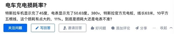 比如有人在某乎上吐槽特斯拉,它的充电损耗率高达 11% ,远高于上述那位兄弟说的 4% ,但原因很复杂,人、车、桩都有可能。
