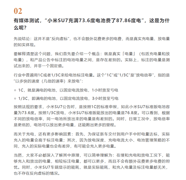 今天小米官方也对这个事件作了回应,确实不是 “ 反向虚标 ” 的藏电。