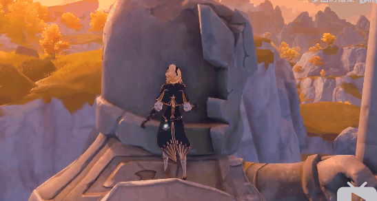 5、爬到雕像的头顶,将石头镶嵌到眼睛里,即可解开门口封印。