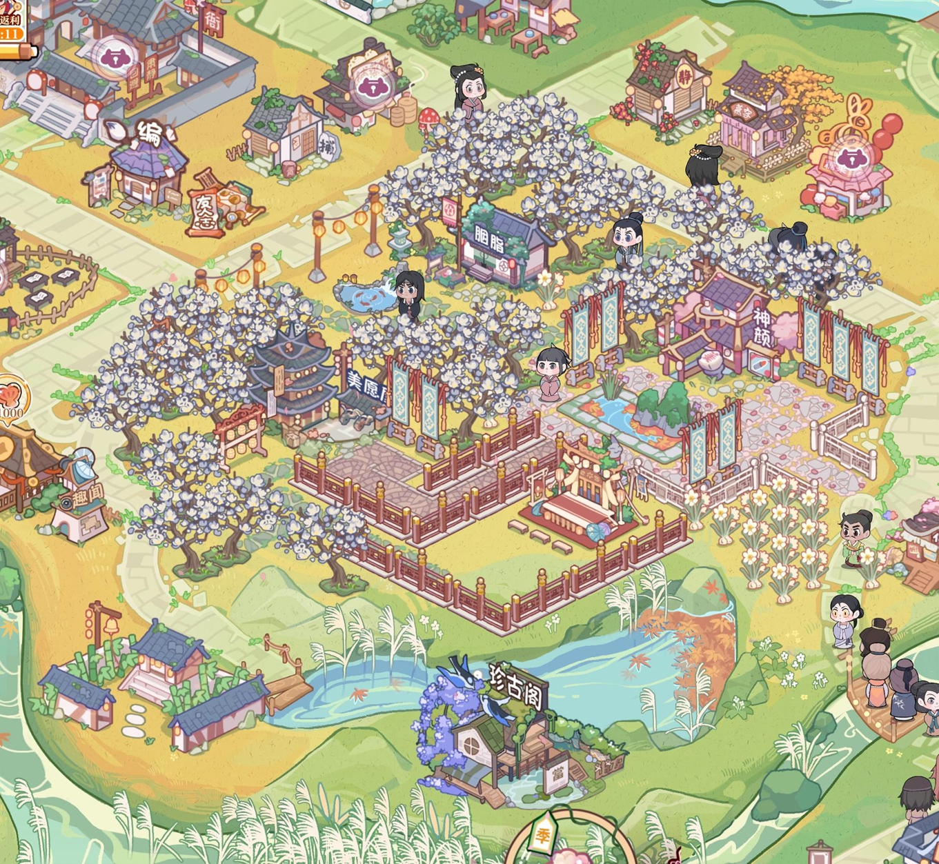 与此同时玩家还能解锁出更多的美妆造型,方便你对游戏内普通的NPC们进行古装版“颜值爆改”。