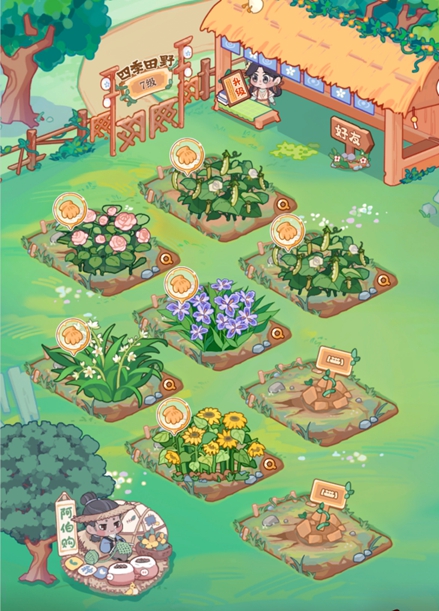 四季田野也是游戏内关键的玩法之一,玩家可以在其中体验种花、“偷菜”、收获的乐趣。如果做厌了“商业精英”,试着回归田园生活吧!