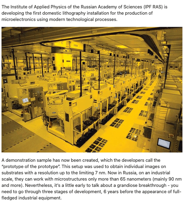 电子工程世界:俄罗斯首台光刻机,真的制造成功了