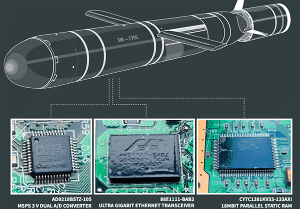 俄军 “ 口径 ”M 巡航导弹中,发现了常用的家用电器芯片。