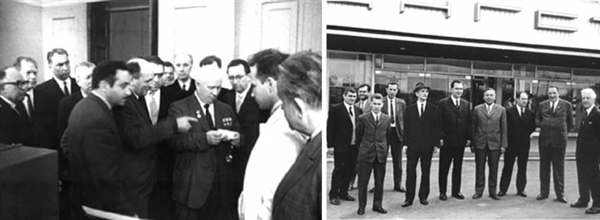 技术人员向赫鲁晓夫宣传泽列诺格勒。右图戴帽子的为泽列诺格勒之父肖金