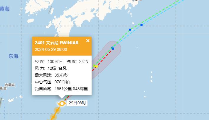 2024年1号台风艾云尼现在位置在哪里