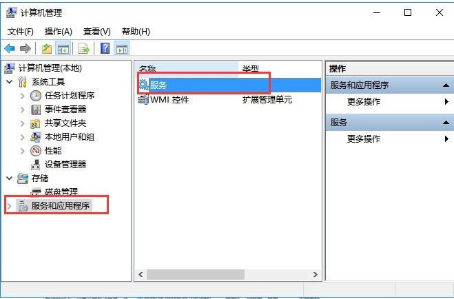 2、在打开的电脑管理窗口中,点击左侧的【服务和应用程序】选项,在右侧界面中点击【服务】。