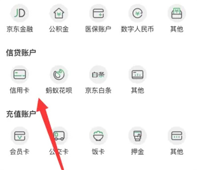 5. 这时会出现选择账号类型的菜单页,在其中“信贷账户”下有一个“信用卡”,在上面点击。