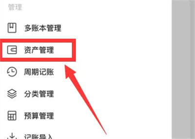 3. 当页面左侧弹出一个菜单页时,在其中点击选择“资产管理”这一项。