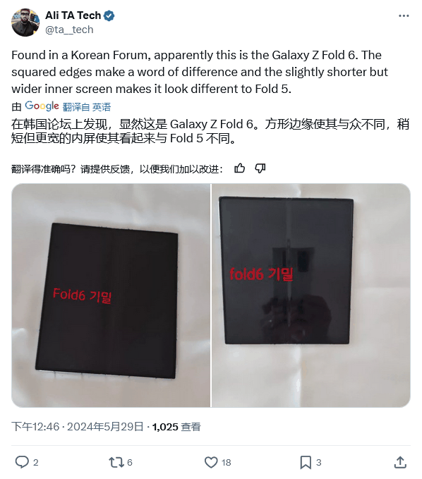 5 月 30 日消息,消息源 @i 冰宇宙今天在微博和 X 平台发布动态,分享了三星 Galaxy Z Fold6 手机的新图片,表明该机的外观更加方正,且背面相机岛部分会有调整。