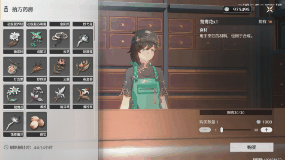 *在地图中可以采集,还可以在商店中来购买,其中星星图形代表鸳鸯花,花朵图形代表木莲。