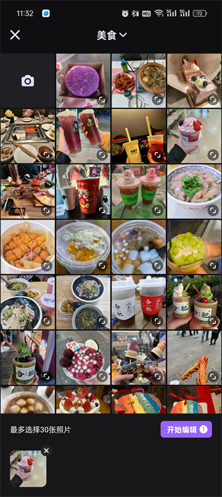 2、然后会来到选择素材的页面中,在这里我们选择好需要换背景的【图片】-【开始编辑】;