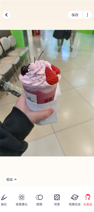 3、接着在修图的页面中我们在下面的工具栏中找到【抠图】功能点击;