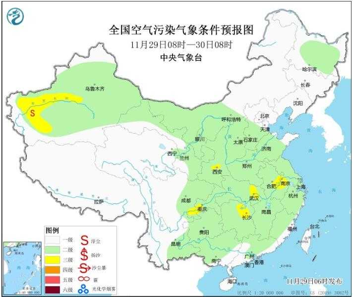 受冷空气影响,11月29日至12月1日,全国大部地区大气扩散条件较好,无大范围霾天气。12月2日至6日,华北中南部、黄淮西部等地大气扩散条件较差。此外,28日夜间至29日上午,湖北中部、湖南西部等地的部分地区有大雾天气。
