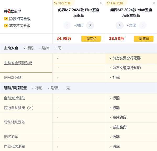 目前,这套底盘和全系标配华为 ADS 2.0 智驾系统,没了之前低配的博世和福瑞泰克的智驾。刚好,根据之前的定价,选不选智驾的差价刚好也是 4 万。