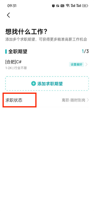 2、然后在想找什么工作的页面中我们可以看到有一个【求职状态】的按钮点击;