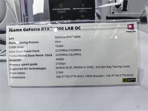 在搭载了GeForce RTX 40 系列 GPU的NVIDIA AI Zone,七彩虹展示了其最新的RTX 4090显卡,4nm工艺,16384核心,可提供高达1321 TOPS的AI算力,并可借助NVIDIA RTX AI平台,为超过500款AI加速的游戏和应用程序提供独特的性能和加速。