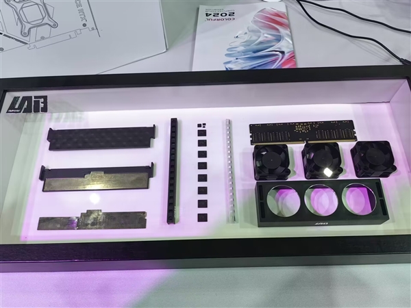 七彩虹在iGame Lab产品展区展示了其最新研发的风冷内存,展出的为24GB*2套条,频率为8400MHz,这款内存以其卓越的散热性能和高速数据处理能力,吸引了众多极限超频玩家的目光。