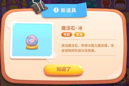 魔法石·冰:激活魔法石,获得冰霜力量支援,攻击怪物并形成冰冻效果。