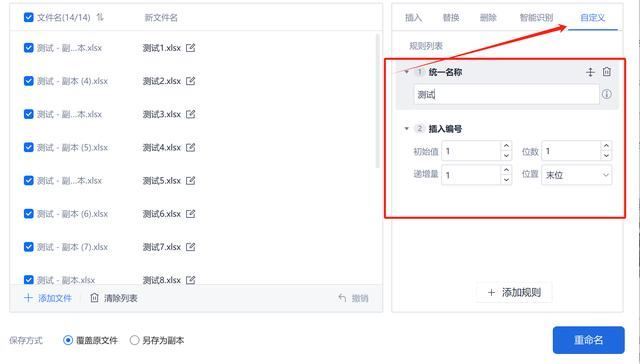 5. 设置重命名规则: