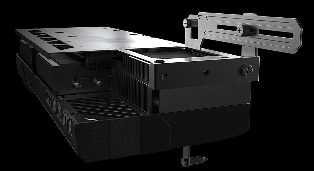为应对此项设计改变,整个散热模组的尺寸也相应加大,由WINDFORCE OC 的 8 热管 + 3x 80mm 风扇升级为 9 热管 + 3x 100mm 风扇,并附赠固定支架,默认 OC 频率也由 2625MHz 提升至 2655MHz。