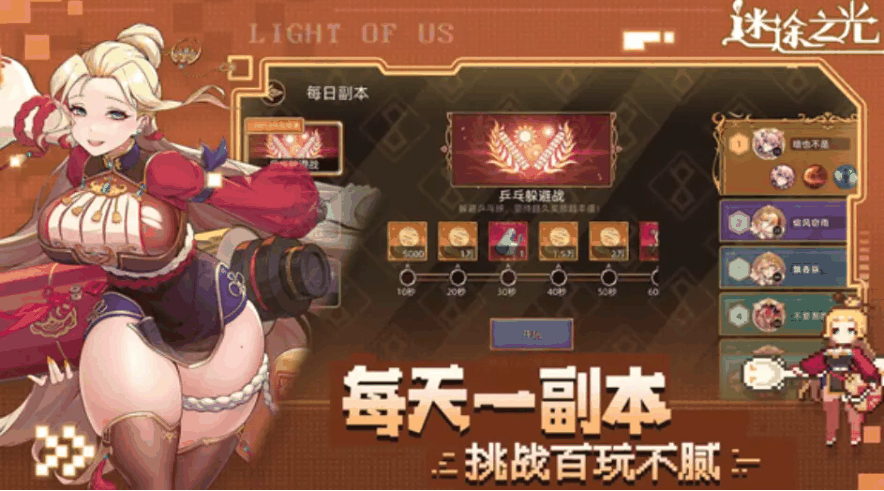 迷途之光挑战模式下,玩家可不间断地进行战斗,考验战斗技巧和勇气。您将在这些关卡中遭遇强大的敌人,只有锻炼战斗技巧,方能披荆斩棘,获得胜利。
