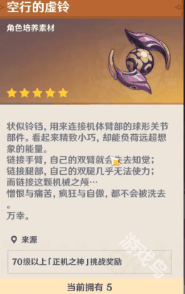 4、空行的虚铃,需要通过散兵周本boss才可以获得。
