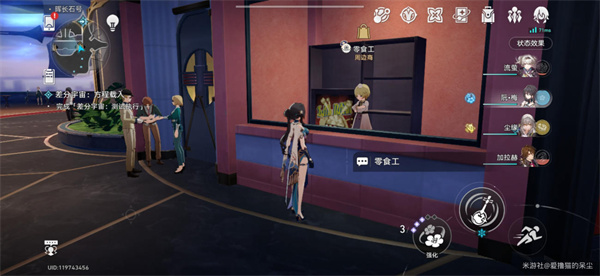 2、然后进入店铺之后,和零食工NPC去聊一聊。