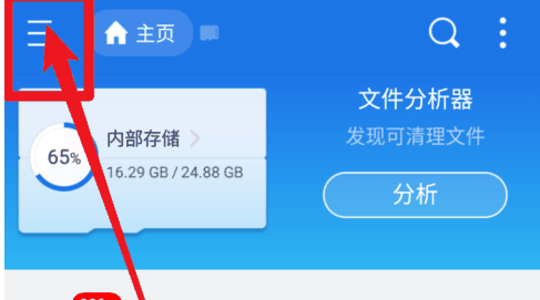 1、首先打开ES文件浏览器,点击左上角【三横】;如图所示