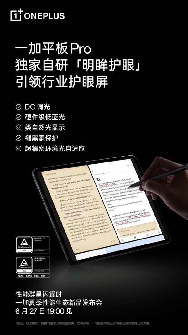 叮当号6月25日消息,一加夏季性能生态新品发布会将于6月27日19:00举行,届时,一加首款平板——一加平板 Pro将正式发布。