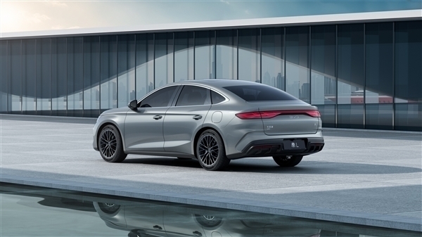 其采用了比亚迪龙睛大灯,同时启用了尺寸更大的进气格栅,且上方车标处的横梁,也采用了亮色的设计,尾部整体设计还挺简洁,贯穿式的尾灯是家族化设计,尾门拥有BYD英文字母以及DM-i和秦L的标识。