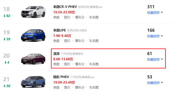 本田凌派的受众群体,很大一部分被比亚迪秦PLUS DM-i、广汽埃安S、吉利帝豪L等车型抢走,这些国产新能源车型,在动力、配置乃至日系车引以为傲的油耗方面,均有着巨大优势。