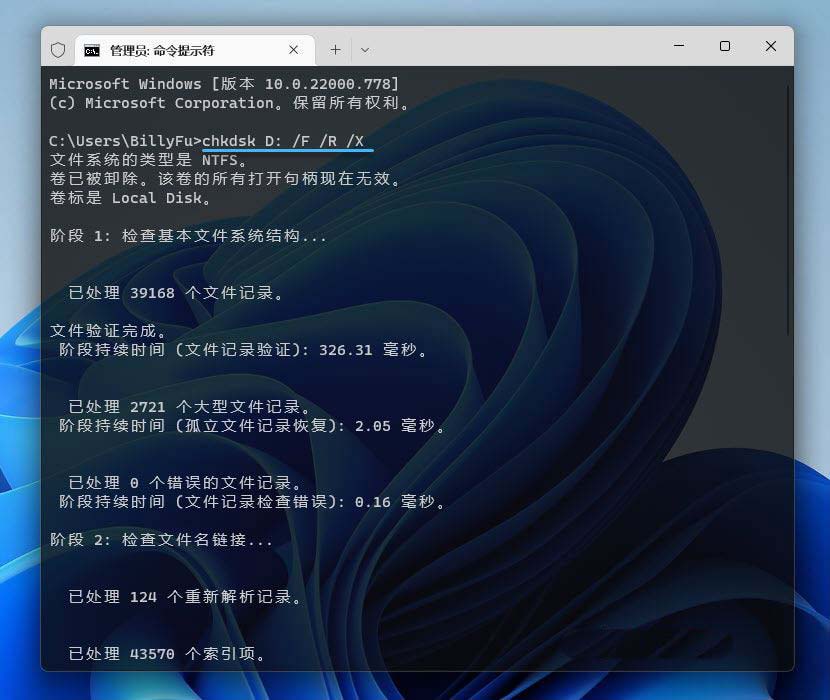注意,CheckDisk 的数据恢复功能有限,主要用于修复损坏的文件系统。