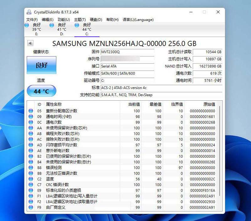 如果要想全面查看磁盘健康状态相关的详细信息,最好还是使用一些专业的第三方工具。有很多类似工具都采用 SMART 功能来获取硬盘数据(原理与 WMIC 是一样的),但输出的结果和细节就比较丰富和专业了。