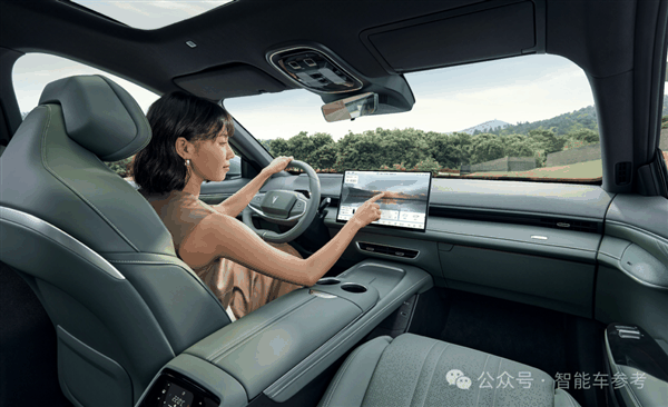 座舱有三块屏幕,主副驾各有一块车机屏,主驾屏是15.6英寸的2.5K屏,还是“祖传”的向日葵屏,支持左右最大15度旋转,可语音调节。