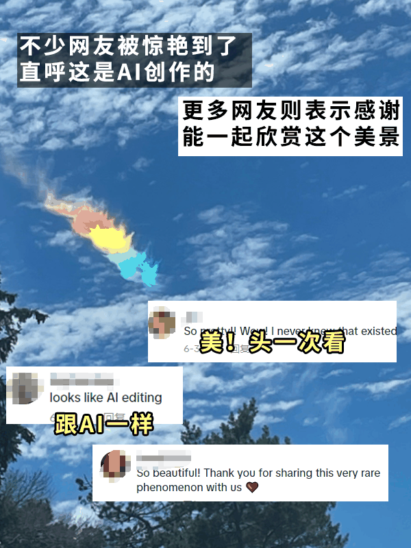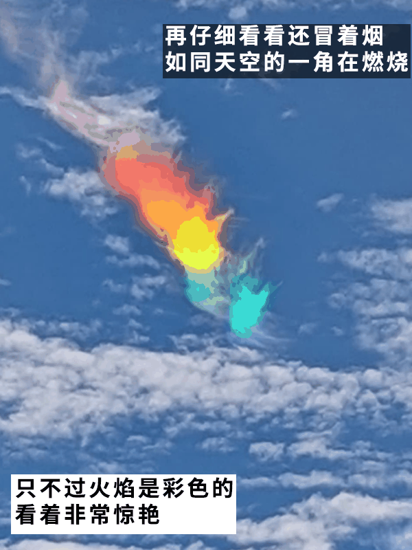 有些自然现象美得像是地球出了问题,例如网友@lizzyann就在前几天拍到了天空中的惊艳一幕,一片似乎正在燃烧的「彩虹」,又或者说这像是一朵彩色的「云彩」,乍一看还以为齐天大圣驾驶着祥云带着仙子在兜风。