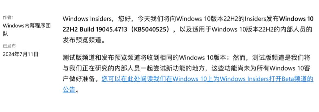 以上就是Win10 Beta / RP 19045.4713更新补丁KB5040525(附更新内容)的详细内容,更多关于Win10 19045.4713更新的资料请关注科技号其它相关文章!