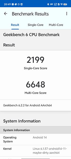 直接来看性能跑分。安兔兔综合跑分成绩为2143068分,Geekbench6多核成绩为6648分,单核成绩为2199分,3DMark Wlidlife Extreme模式最终成绩为5011分,理论跑分成绩稳居目前机圈第一梯队。