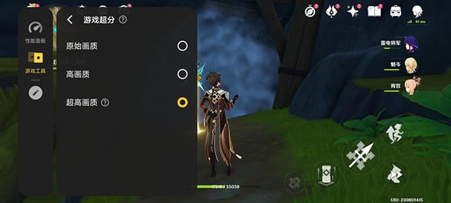 电竞芯片Q1独显在《原神》超分效果非常明显。我们在原始画质、高画质、超高画质三档超分模式分别截了图,依次获得810P、900P、1.5K三个不同分辨率的画面,可以看出,分辨率越高,人物的边缘轮廓、景物的细节也就越清晰。