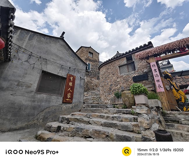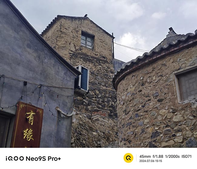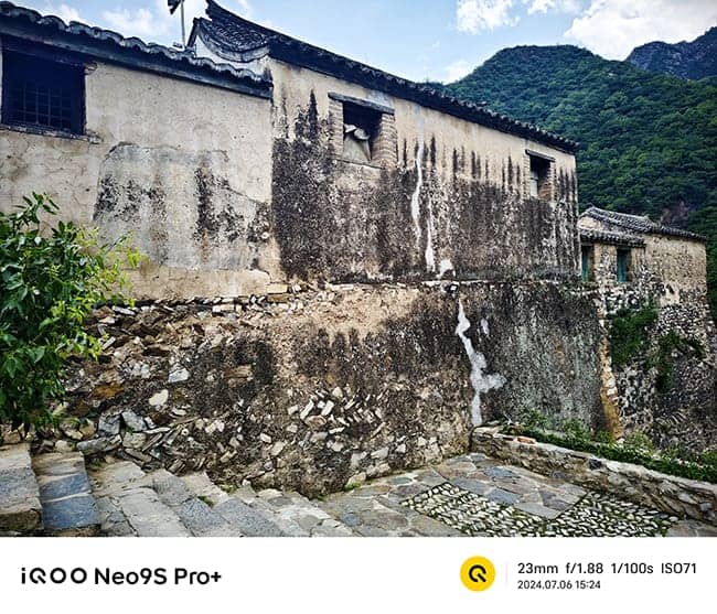 iQOO Neo9S Pro+依旧提供了自然、鲜艳、质感三种不同的色彩方案。在鲜艳模式下,房屋的泥墙和霉斑的颜色都显得非常深,天空也呈现出深蓝色,山峰则是深绿色,整体色调显得比较鲜艳,非常讨好眼球。而自然模式颜色则显得不是那么浓烈,更加符合人眼看到的那样。而质感模式画面颜色对比更加强烈,让人觉得来到不是北京深山的古村落,倒有几分烟雨江南的感觉。