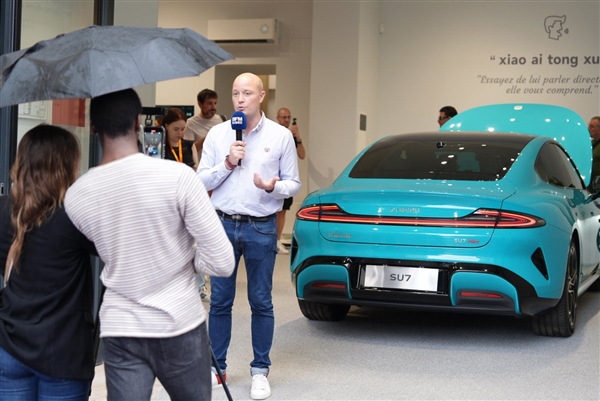 小米SU7在欧洲极受关注,非常多各国游客和它拍照合影。