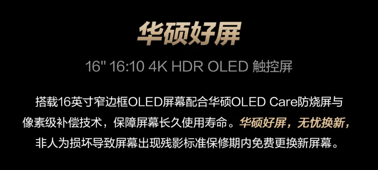 即使真的出现了烧屏问题大家也完全不用担心,因为华硕官方提供了“华硕好屏,无忧换新”服务,如购买笔记本后 1 个月内出现亮点免费换新屏,2 年内正常使用出现残影免费换新屏。