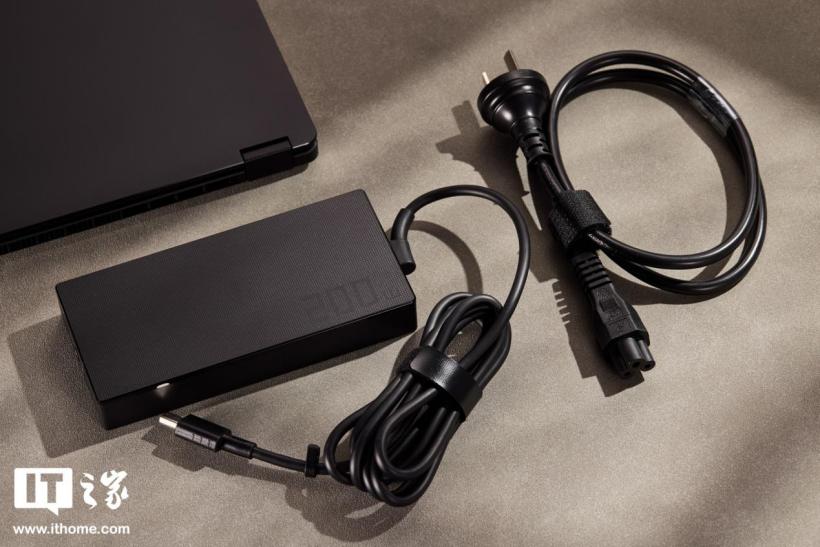 ProArt 创 13 2024 标配 200W 的电源适配器,采用定制接口,厚度比 Type-C 略厚,同样支持正反面盲插。