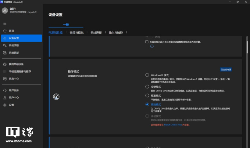 测试之前还有一点需要说明,华硕电脑管家中提供了四种性能模式预设,用户可以按照自己的实际需求进行选择,兼顾性能与续航。