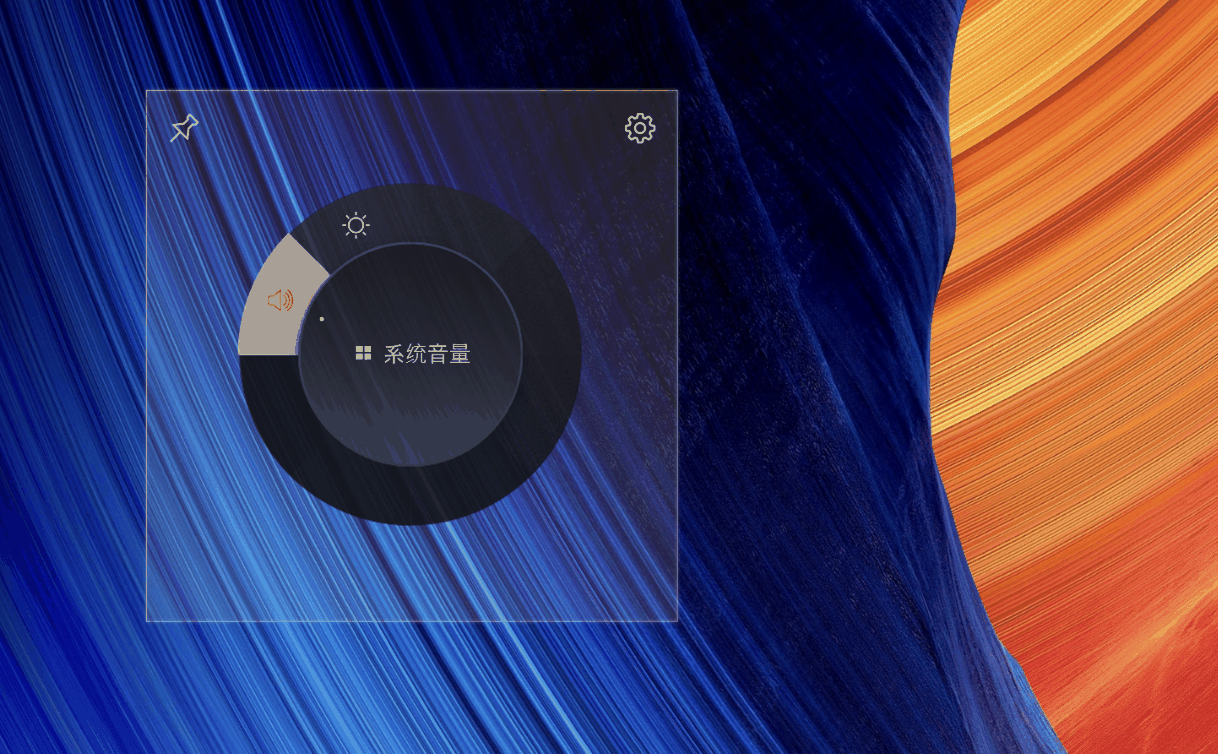 华硕虚拟旋钮默认状态下激活的是系统功能,提供调节系统音量、屏幕亮度、切换桌面等操作。