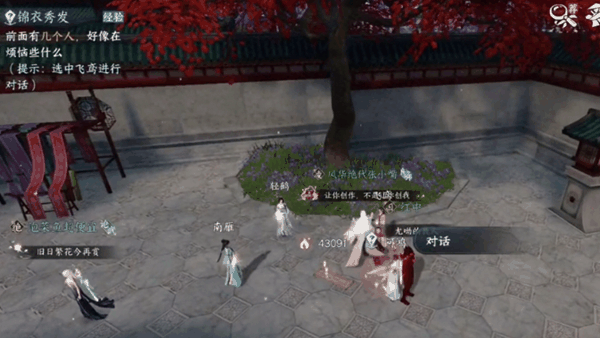 2、之后,玩家要分别与 NPC 南雁、轻鹤、飞鸢、阿鸿进行对话。在交流过程中,仔细获取他们各自对于颜色的喜好。这些 NPC