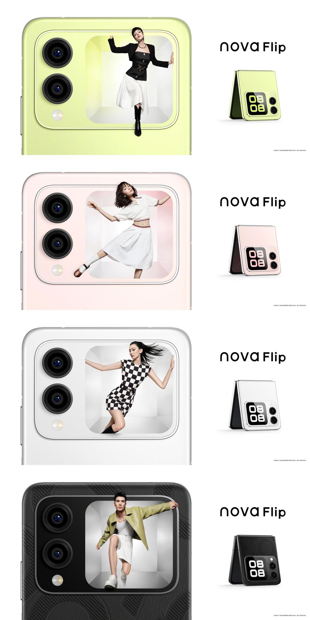 华为 nova Flip 的配色设计同样引人注目,体现了其与年轻人同频共振的潮流态度。nova Flip 推出了向新绿、樱语粉、零度白和星耀黑四种配色,每一种颜色都展现了这款小折叠独特的风格和魅力。