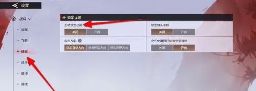 3、在战斗设置页面,找到锁定选项,选择锁定即可设置主动锁定
